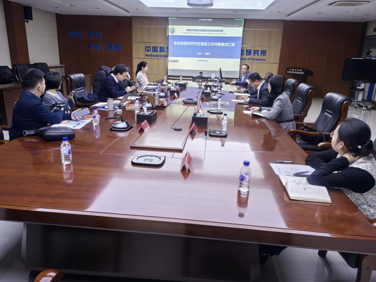 隨后,苑春宇代表東北地理所做研究生思想政治工作情況匯報,詳細(xì)介紹了東北地理所在研究生思想政治建設(shè)、輔導(dǎo)員隊伍、導(dǎo)師隊伍、心理安全、畢業(yè)生就業(yè)等方面的工作。匯報結(jié)束后,與會人員圍繞思政工作、安全保障、就業(yè)指導(dǎo)、導(dǎo)師隊伍建設(shè)、輔導(dǎo)員隊伍建設(shè)等方面進行了深入討論和交流。