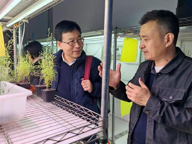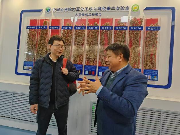 會前,金德鵬一行實地考察了研究生公寓和體育館,了解學(xué)生在所期間學(xué)習(xí)和生活條件;在農(nóng)業(yè)樓聽取了鹽堿地綜合治理技術(shù)、耐鹽堿種質(zhì)資源及新品種等工作進展匯報;在種質(zhì)資源樓,調(diào)研了大豆分子設(shè)計育種重點實驗室,現(xiàn)場查看了大豆基因突變體庫、大豆分子設(shè)計育種技術(shù)體系、高通量作物表型組分析系統(tǒng)及“東生”系列大豆新品種選育與轉(zhuǎn)化工作;在研究所展館,聽取了研究所歷史沿革、學(xué)科布局、承擔(dān)任務(wù)、科技平臺、人才隊伍、黨建工作及發(fā)展規(guī)劃等情況的介紹;在綜合樓與我所10余位研究生代表進行了座談交流,同學(xué)們分別就培養(yǎng)、就業(yè)等問題進行了交流,金德鵬及各位老師也耐心做出了解答,同時鼓勵各位同學(xué)不斷加強自身能力建設(shè),為祖國的科技事業(yè)貢獻(xiàn)自己的力量。