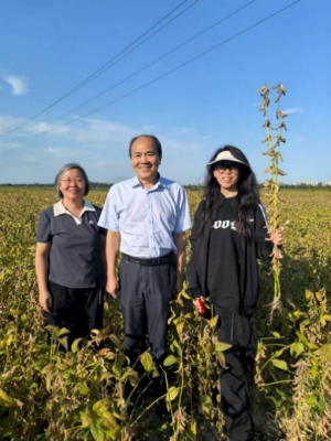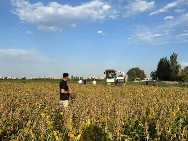 2025年8月30日,在新疆農(nóng)墾科學(xué)院石河子基地,專(zhuān)家組對(duì)劉寶輝團(tuán)隊(duì)承擔(dān)的“北方大豆高產(chǎn)新種質(zhì)創(chuàng)制與應(yīng)用項(xiàng)目中任務(wù)—早熟高產(chǎn)、理想株型種質(zhì)創(chuàng)制”任務(wù)(2021YFD1201101-02)中理想株型種質(zhì)“中牡260”(北豆40熟期組)小面積示范田進(jìn)行測(cè)產(chǎn)。專(zhuān)家組由中國(guó)農(nóng)業(yè)科學(xué)院油料作物研究所周新安研究員任組長(zhǎng)、成員有新疆農(nóng)墾科學(xué)院研究員戰(zhàn)勇、新疆農(nóng)業(yè)科學(xué)院研究員叢花、石河子大學(xué)教授劉峰、黑龍江省農(nóng)業(yè)科學(xué)院牡丹江分院研究員任海祥。大豆育種專(zhuān)家杜維廣研究員、國(guó)家重點(diǎn)研發(fā)計(jì)劃項(xiàng)目負(fù)責(zé)人張淑珍教授、東北地理所大豆分子育種學(xué)科組翟紅研究員等全程參加本次測(cè)產(chǎn)。