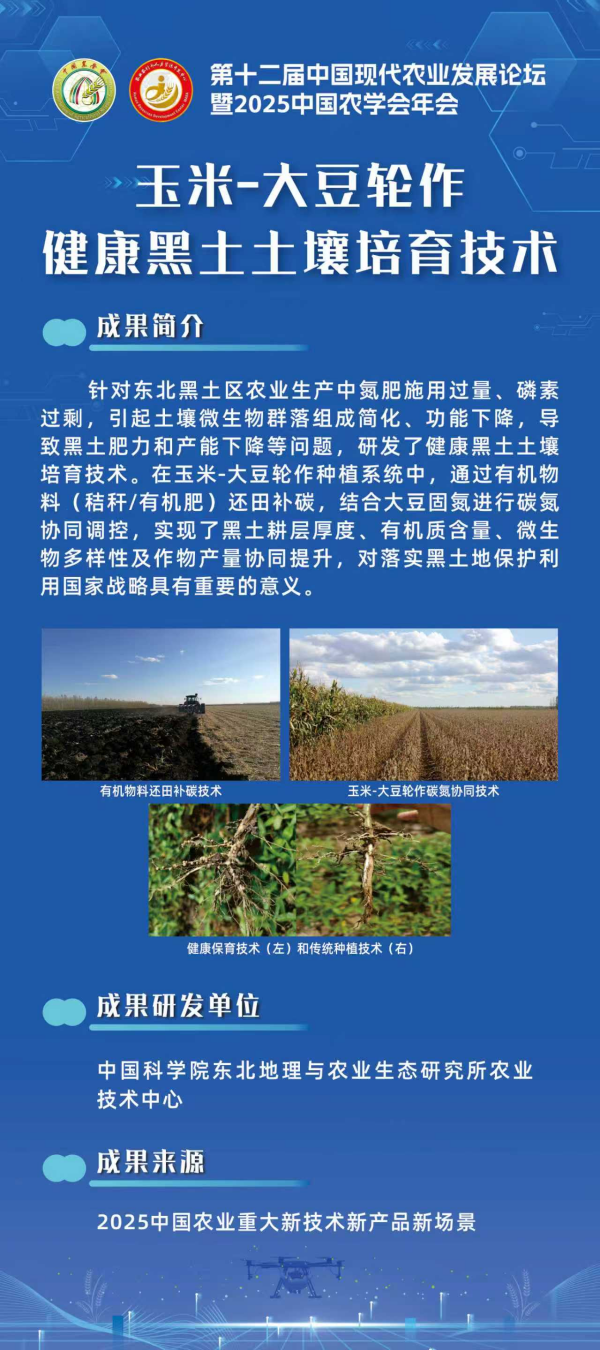 玉米-大豆輪作健康黑土土壤培育技術入選2025年中國農(nóng)業(yè)重大新技術新產(chǎn)品新場景