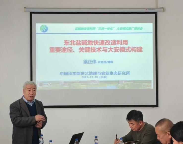 2026年1月30日,中國科學院東北地理與農業生態研究所(以下簡稱“東北地理所”)在長春成功舉辦鹽堿地“三良一體化”高效治理與綜合利用大安模式院地合作推廣座談會。會議旨在總結推廣以科技創新驅動鹽堿地改造的成熟經驗,凝聚院地合力,為吉林省“千億斤糧食”產能建設工程提供堅實支撐。座談會由王明明副研究員主持。