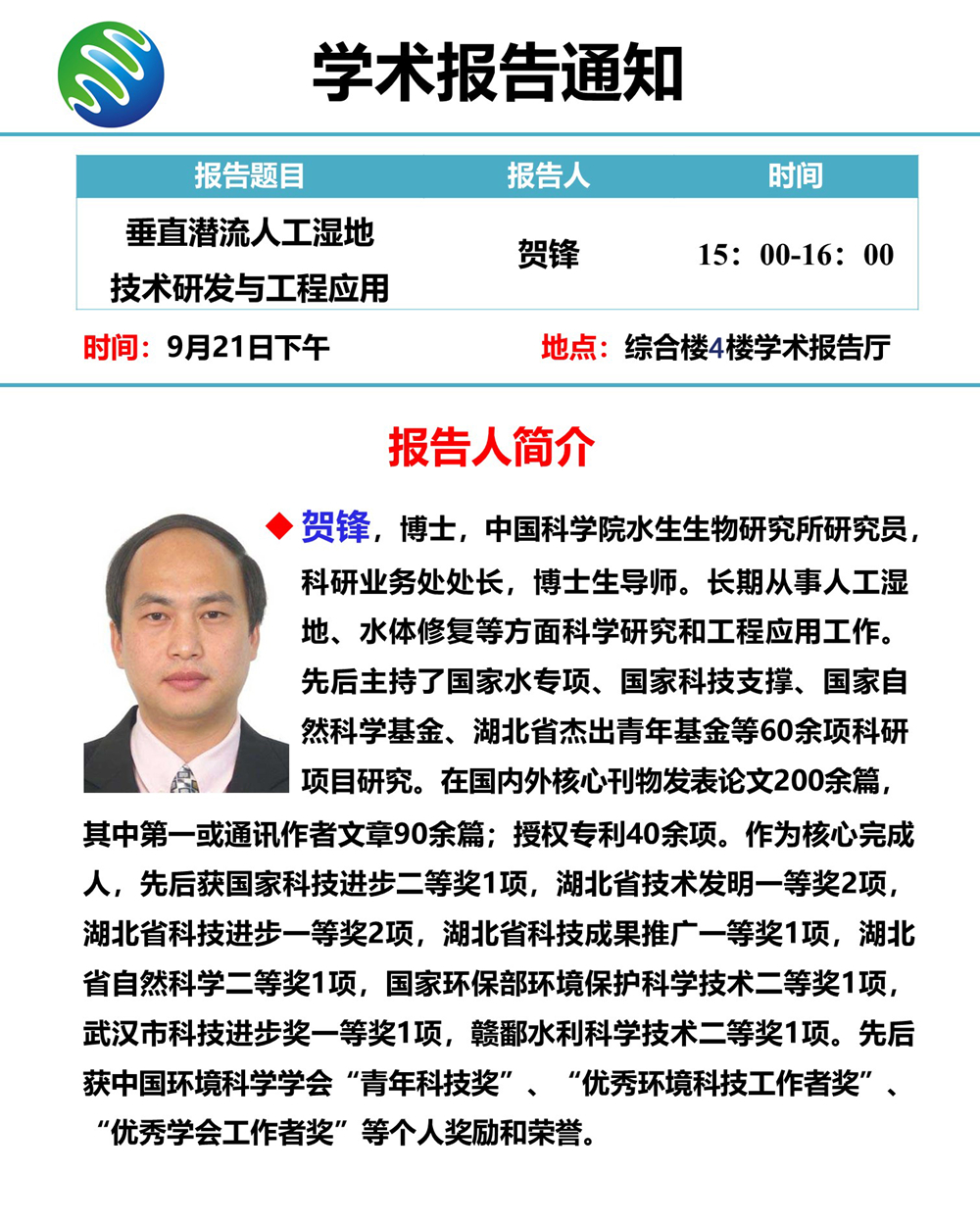 垂直潛流人工濕地技術(shù)研發(fā)與工程應(yīng)用-賀鋒 研究員