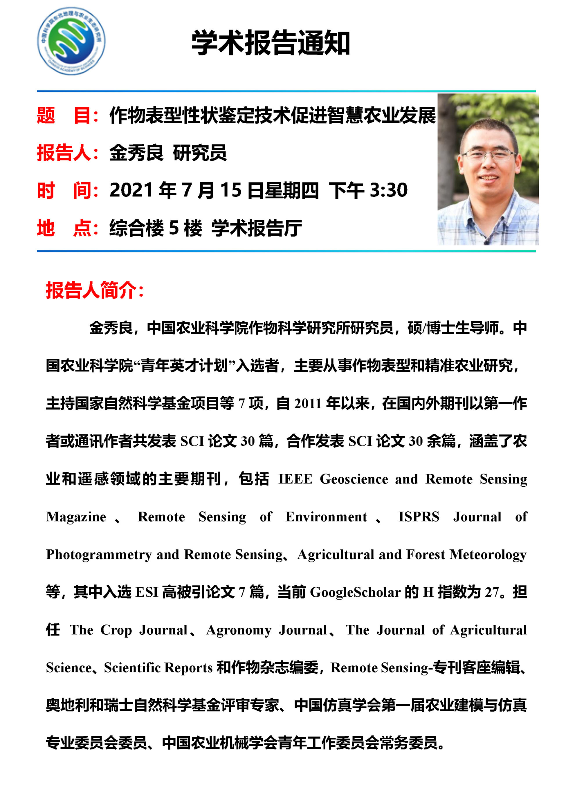作物表型性狀鑒定技術(shù)促進智慧農(nóng)業(yè)發(fā)展-金秀良 研究員