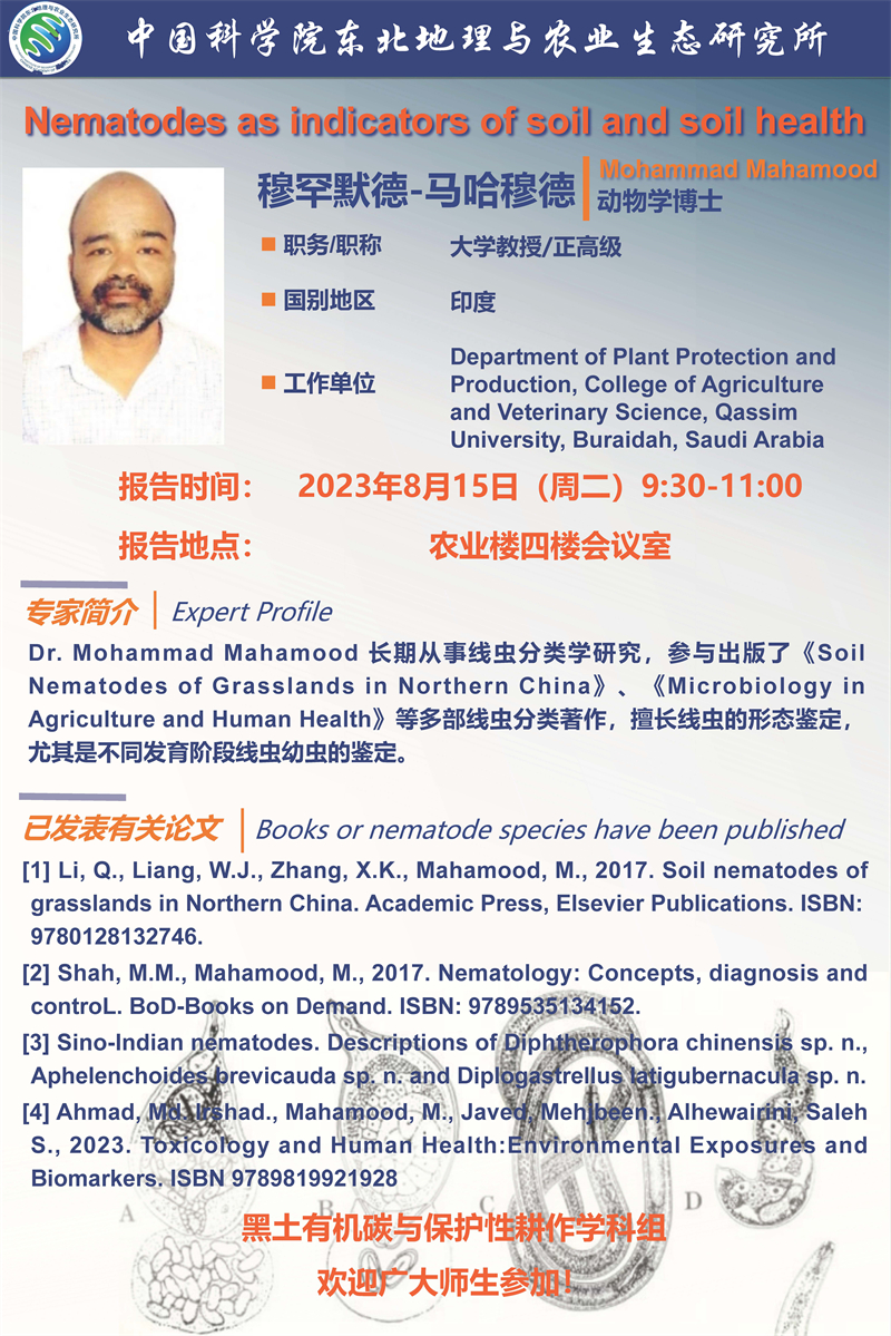 Nematodes as indicators of soil and soil health-穆罕默德-馬哈穆德 教授
